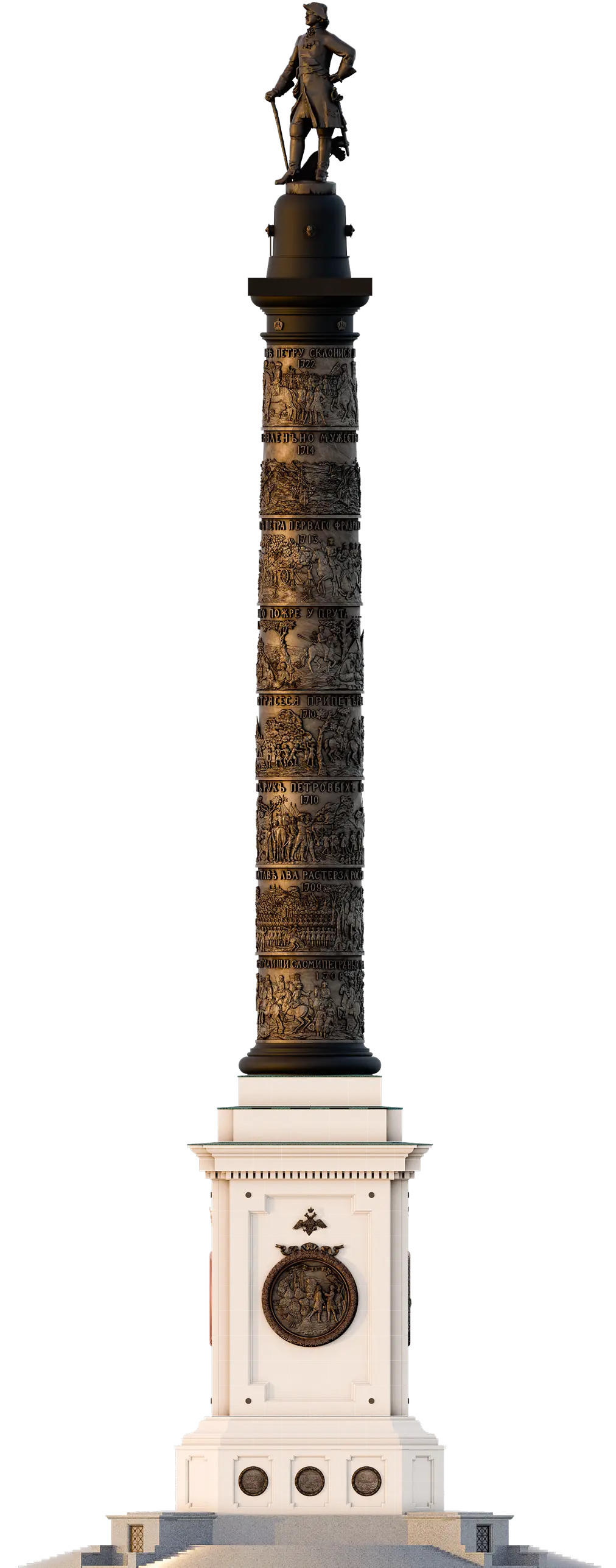 Идея Петра I, триумфатора Северной войны и преобразователя России, воплощается сегодня, на наших глазах. По инициативе ПАО «Газпром» в 2023 году представлен проект Триумфального столпа, созданный на основе модели XVIII века совместно с историками, исследователями и музейными хранителями.